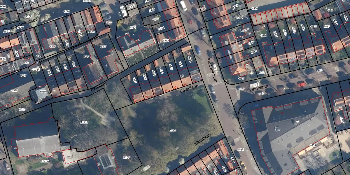 Eikenlaan 20 is gelegen op kadastraal perceel LDD00A4431. Deze kadastrale aanduiding is uniek en wordt gebruikt door het Kadaster om eigendomsrechten en andere zakelijke rechten vast te leggen. Het perceel maakt onderdeel uit van de kadastrale gemeente Leiderdorp.