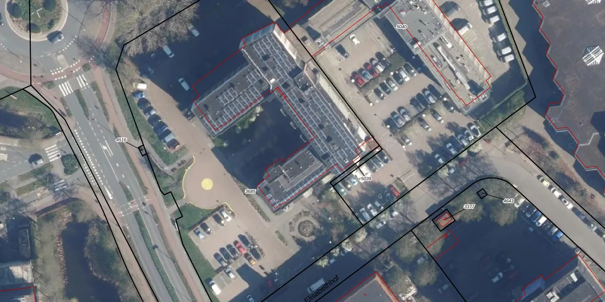 Het perceel waarop Elisabethhof 111 staat heeft een oppervlakte van 5815 m². Dit is een zeer groot perceel. De perceeloppervlakte wordt geregistreerd door het Kadaster. Gedetailleerde informatie over de maten van dit perceel kunt u vinden in het rapport Kadastrale kaart met maatvoering van Elisabethhof 111.