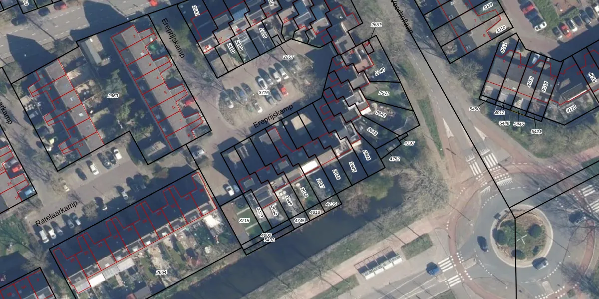 Het perceel waarop Ereprijskamp 12 staat heeft een oppervlakte van 182 m². Dit is een middelgroot perceel. De perceeloppervlakte wordt geregistreerd door het Kadaster. Gedetailleerde informatie over de maten van dit perceel kunt u vinden in het rapport Kadastrale kaart met maatvoering van Ereprijskamp 12.