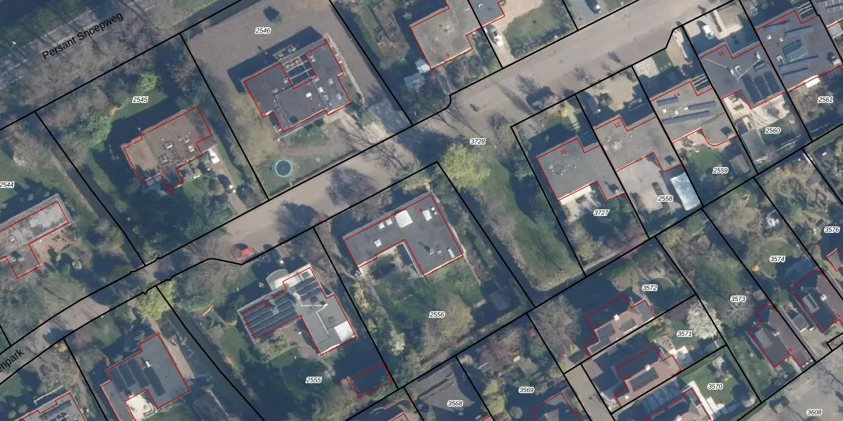 Gebruik de zoekbalk of klik op een perceel voor informatie over de adressen binnen dit perceel.