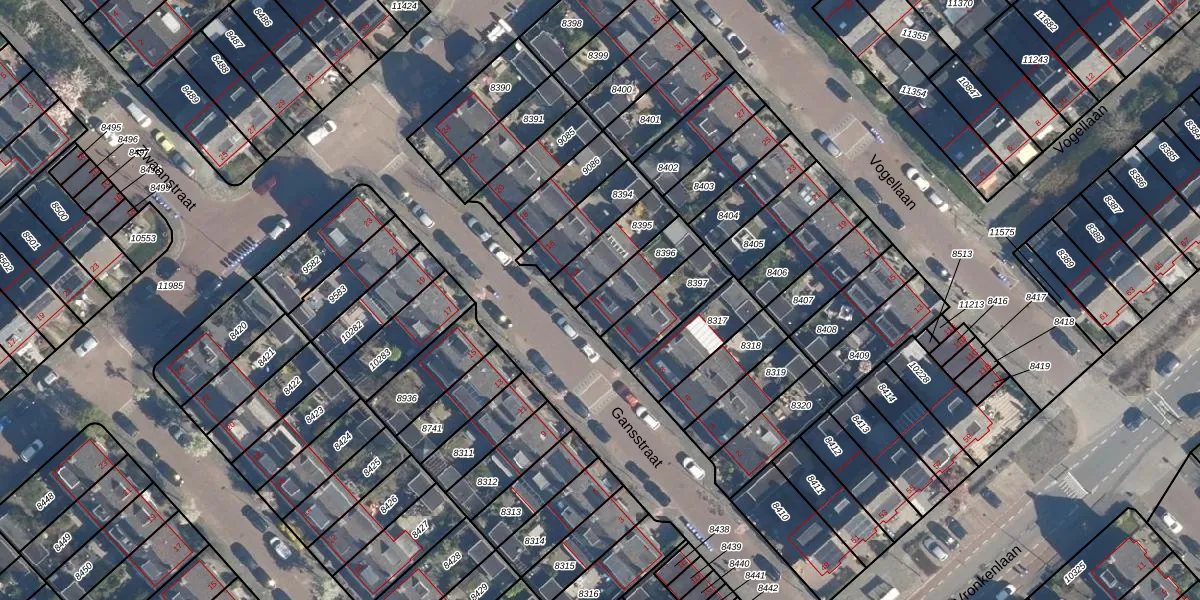 Gebruik de zoekbalk of klik op een perceel voor informatie over de adressen binnen dit perceel.