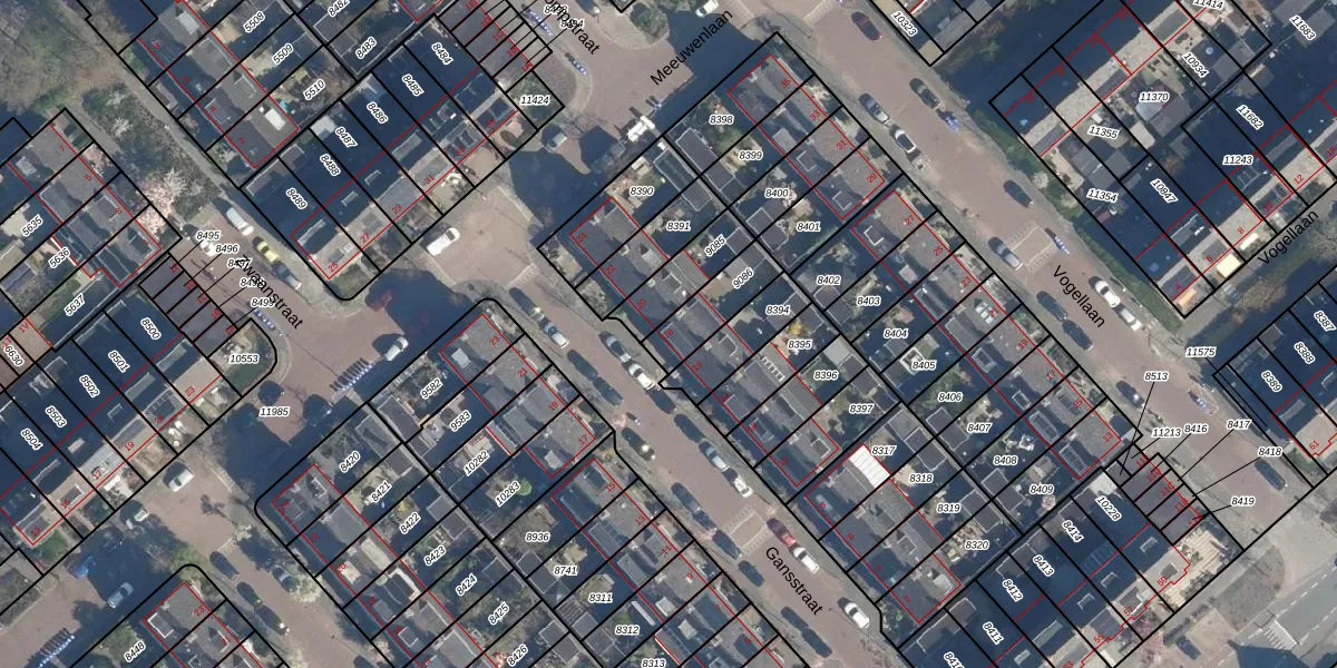 Gebruik de zoekbalk of klik op een perceel voor informatie over de adressen binnen dit perceel.