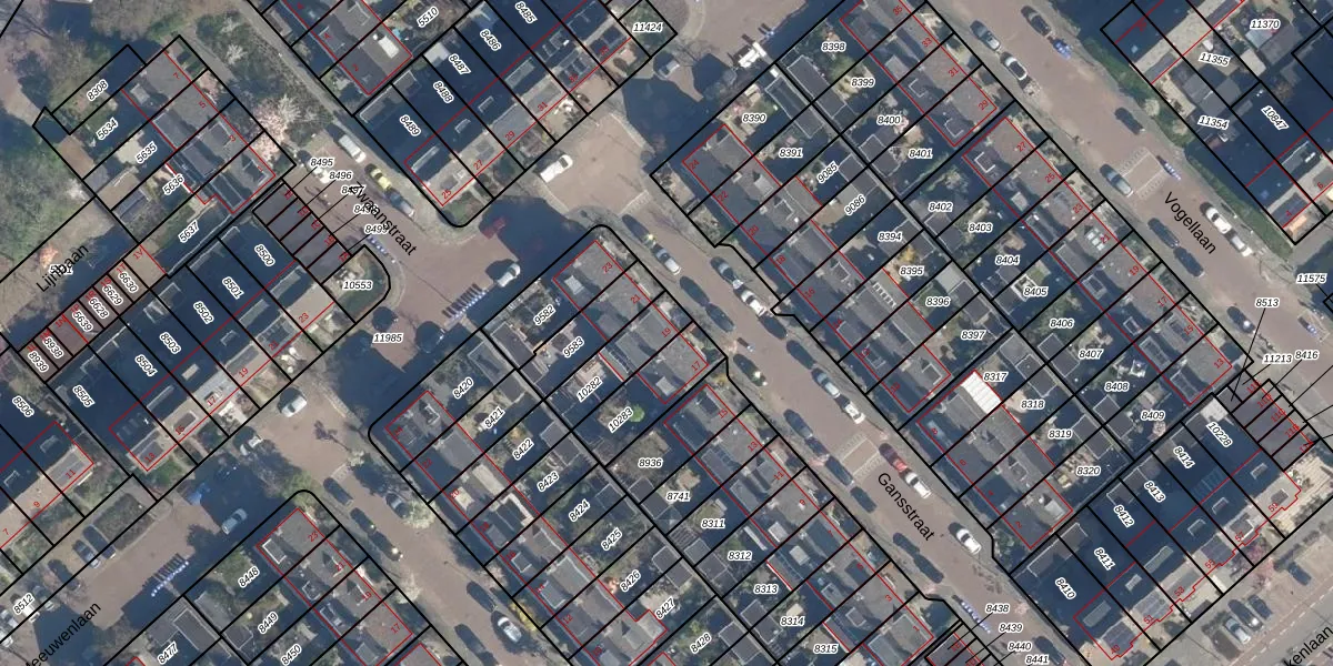 Gansstraat 19 is gelegen op kadastraal perceel LDD00A10282. Deze kadastrale aanduiding is uniek en wordt gebruikt door het Kadaster om eigendomsrechten en andere zakelijke rechten vast te leggen. Het perceel maakt onderdeel uit van de kadastrale gemeente Leiderdorp.