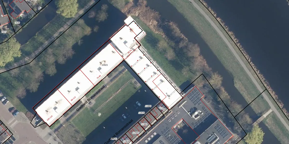 Het perceel waarop Godfried Bomansstraat 34 staat heeft een oppervlakte van 2227 m². Dit is een zeer groot perceel. De perceeloppervlakte wordt geregistreerd door het Kadaster. Gedetailleerde informatie over de maten van dit perceel kunt u vinden in het rapport Kadastrale kaart met maatvoering van Godfried Bomansstraat 34.