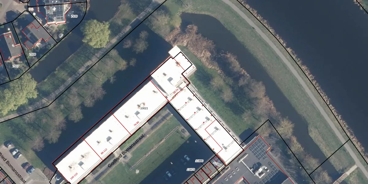 Het perceel waarop Godfried Bomansstraat 50 staat heeft een oppervlakte van 2227 m². Dit is een zeer groot perceel. De perceeloppervlakte wordt geregistreerd door het Kadaster. Gedetailleerde informatie over de maten van dit perceel kunt u vinden in het rapport Kadastrale kaart met maatvoering van Godfried Bomansstraat 50.