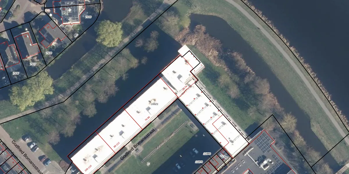 Het perceel waarop Godfried Bomansstraat 60 staat heeft een oppervlakte van 2227 m². Dit is een zeer groot perceel. De perceeloppervlakte wordt geregistreerd door het Kadaster. Gedetailleerde informatie over de maten van dit perceel kunt u vinden in het rapport Kadastrale kaart met maatvoering van Godfried Bomansstraat 60.