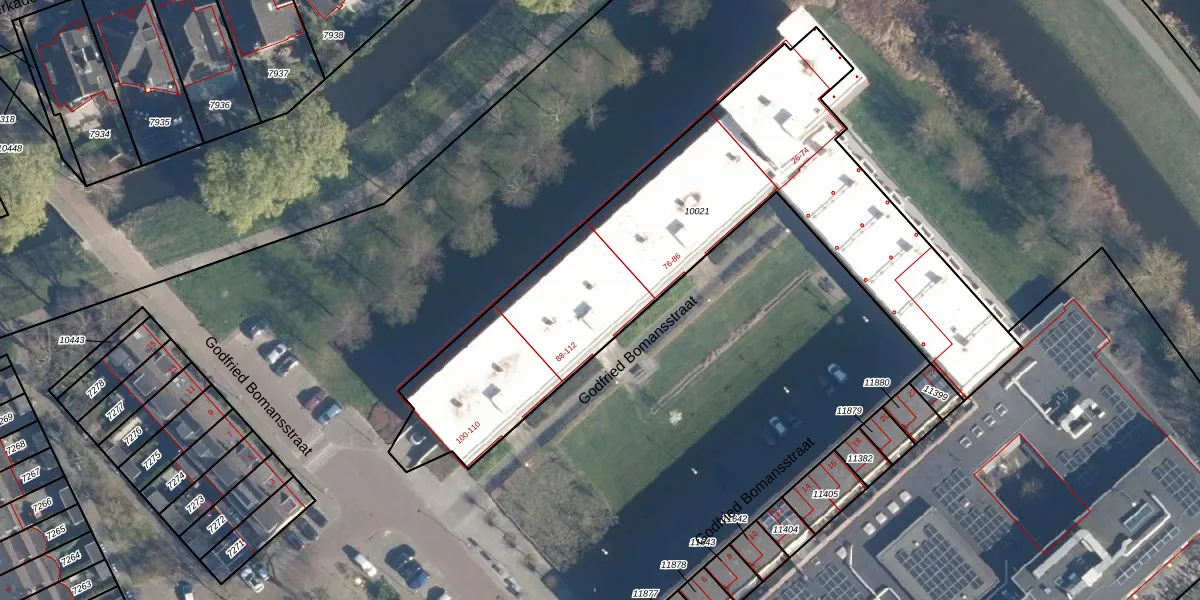 Het perceel waarop Godfried Bomansstraat 92 staat heeft een oppervlakte van 2227 m². Dit is een zeer groot perceel. De perceeloppervlakte wordt geregistreerd door het Kadaster. Gedetailleerde informatie over de maten van dit perceel kunt u vinden in het rapport Kadastrale kaart met maatvoering van Godfried Bomansstraat 92.