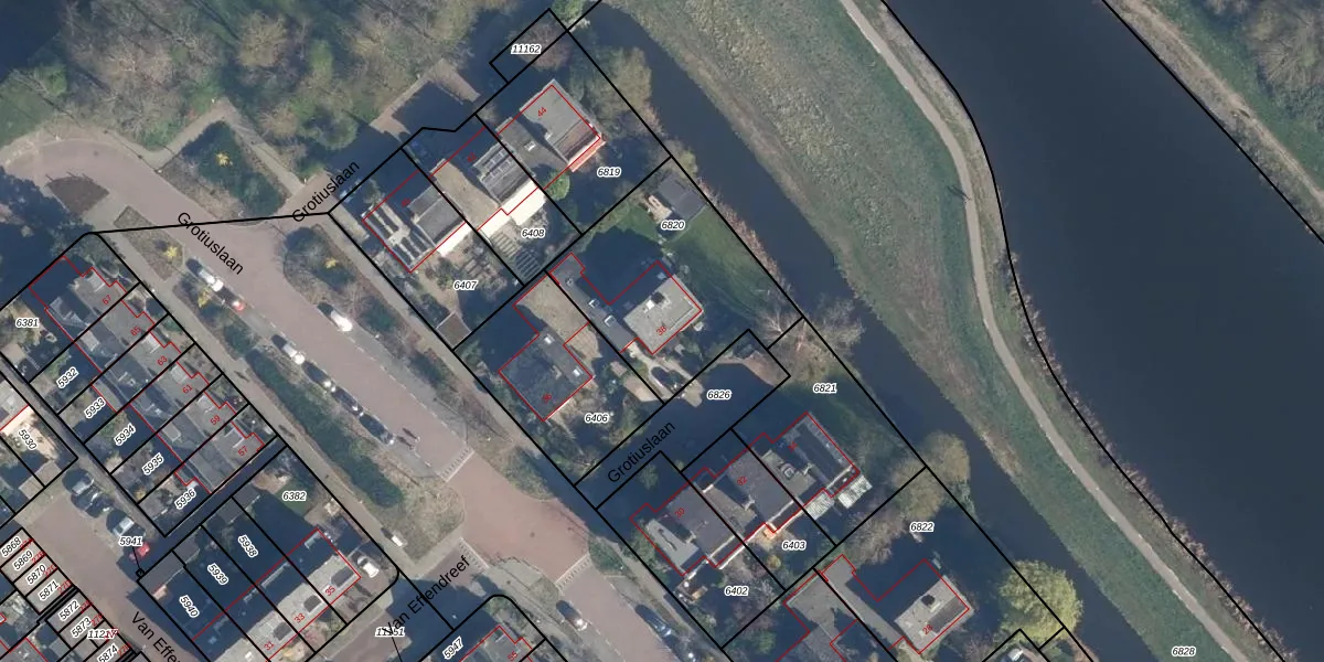 Grotiuslaan 38 is gelegen op kadastraal perceel LDD00A6820. Deze kadastrale aanduiding is uniek en wordt gebruikt door het Kadaster om eigendomsrechten en andere zakelijke rechten vast te leggen. Het perceel maakt onderdeel uit van de kadastrale gemeente Leiderdorp.