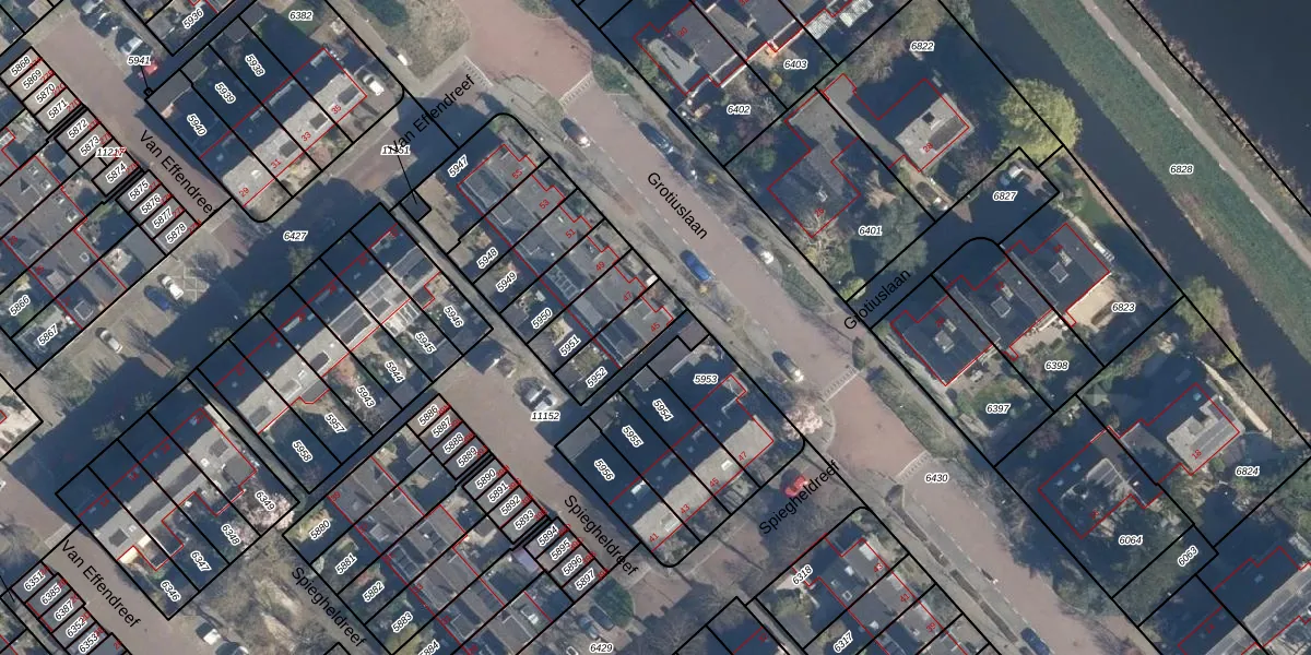 Grotiuslaan 45 is gelegen op kadastraal perceel LDD00A5952. Deze kadastrale aanduiding is uniek en wordt gebruikt door het Kadaster om eigendomsrechten en andere zakelijke rechten vast te leggen. Het perceel maakt onderdeel uit van de kadastrale gemeente Leiderdorp.