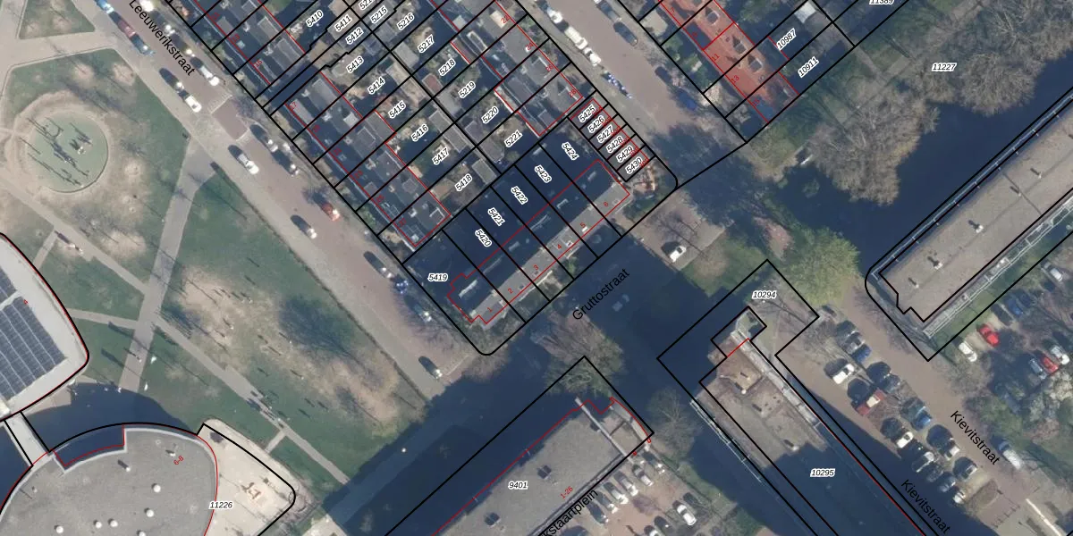 Gruttostraat 3 is gelegen op kadastraal perceel LDD00A5421. Deze kadastrale aanduiding is uniek en wordt gebruikt door het Kadaster om eigendomsrechten en andere zakelijke rechten vast te leggen. Het perceel maakt onderdeel uit van de kadastrale gemeente Leiderdorp.