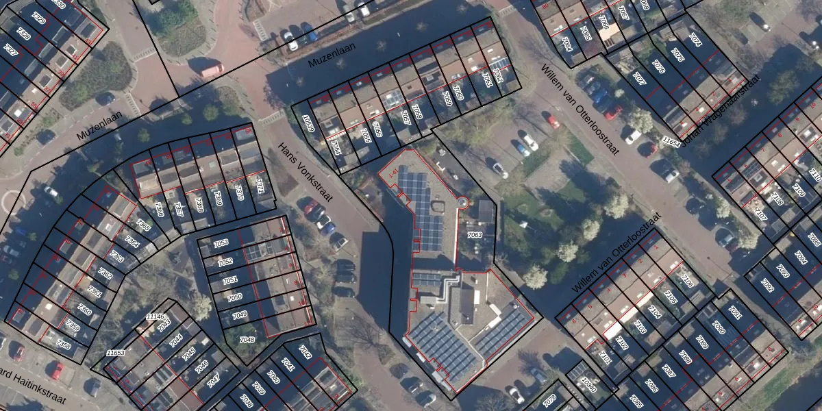 Het adres is gelegen op perceel 7063 in de sectie A en de kadastrale gemeente Leiderdorp. De kadastrale aanduiding is aldus LDD00-A-7063. De oppervlakte van het perceel is 1590 m². Dat is groter dan gemiddeld in Leiderdorp, waar de gemiddelde perceeloppervlakte op 1289,87 m² ligt. Het grootste perceel in de kadastrale gemeente is 43,4 ha. Het kleinste perceel heeft een oppervlakte van 0 m². Op het perceel liggen in totaal 21 adressen. De huidige grenzen van het perceel zijn digitaal in de Basisregistratie Kadaster (BRK) geregistreerd op 16-12-2008.
