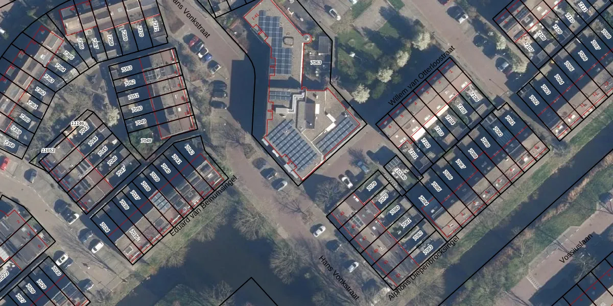 Hans Vonkstraat 41 is gelegen op kadastraal perceel LDD00A7063. Deze kadastrale aanduiding is uniek en wordt gebruikt door het Kadaster om eigendomsrechten en andere zakelijke rechten vast te leggen. Het perceel maakt onderdeel uit van de kadastrale gemeente Leiderdorp.