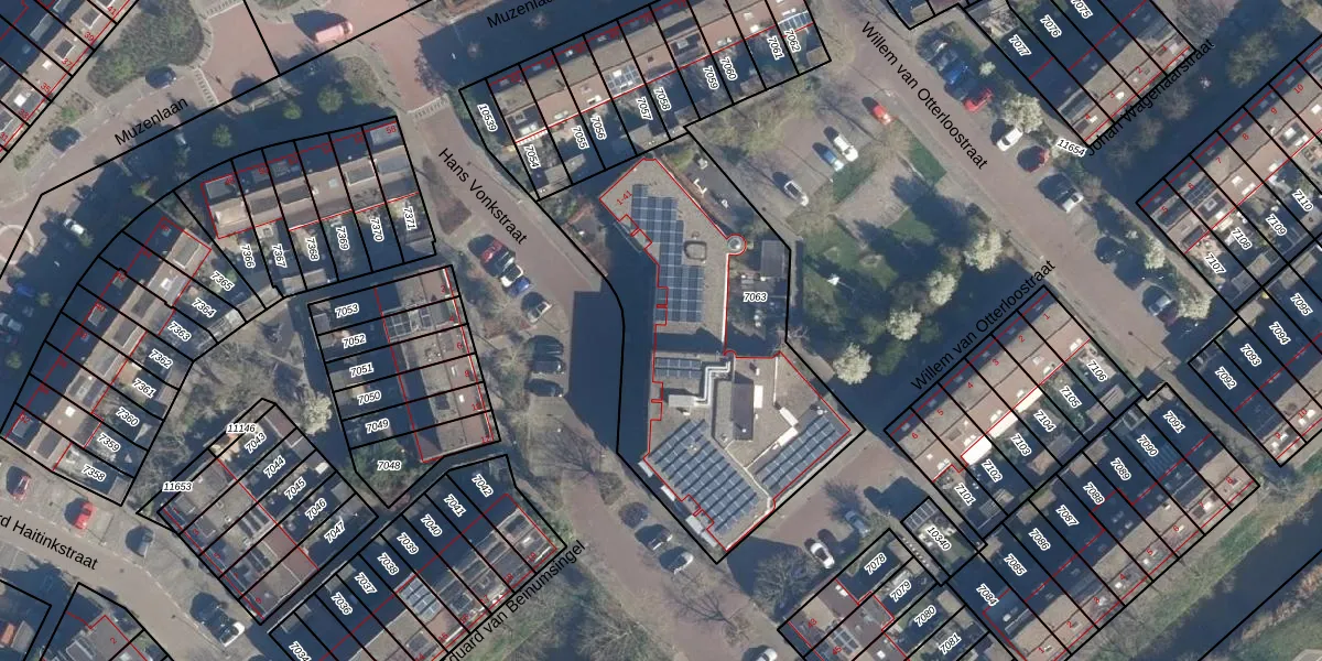 Het adres is gelegen op perceel 7063 in de sectie A en de kadastrale gemeente Leiderdorp. De kadastrale aanduiding is aldus LDD00-A-7063. De gemiddelde perceeloppervlakte in de kadastrale gemeente Leiderdorp is 1286,62 m². Dit perceel is met zijn 1590 m² dus groter dan gemiddeld. De grootste perceeloppervlakte in de kadastrale gemeente is 43,4 ha. De kleinste oppervlakte bedraagt 0 m². Er zijn 21 adressen aanwezig op het perceel. De huidige grenzen van het perceel zijn digitaal in de Basisregistratie Kadaster (BRK) geregistreerd op 16-12-2008.
