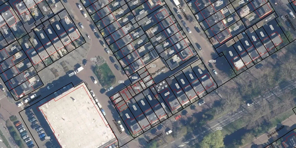 Gebruik de zoekbalk of klik op een perceel voor informatie over de adressen binnen dit perceel.