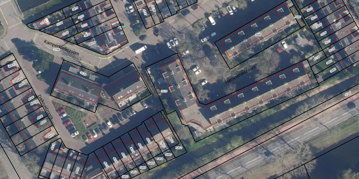 Het perceel waarop Havikskruidzoom 15 staat heeft een oppervlakte van 1895 m². Dit is een zeer groot perceel. De perceeloppervlakte wordt geregistreerd door het Kadaster. Gedetailleerde informatie over de maten van dit perceel kunt u vinden in het rapport Kadastrale kaart met maatvoering van Havikskruidzoom 15.