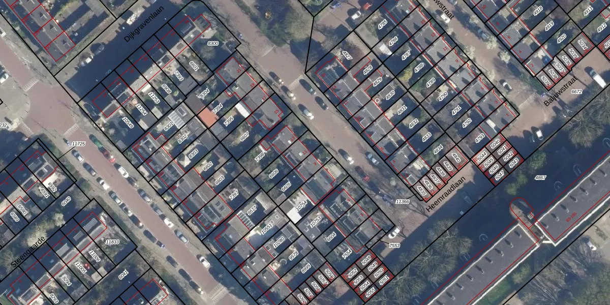 Gebruik de zoekbalk of klik op een perceel voor informatie over de adressen binnen dit perceel.