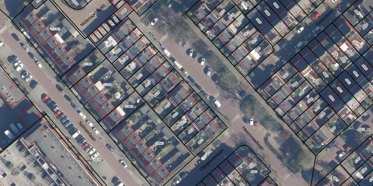 Gebruik de zoekbalk of klik op een perceel voor informatie over de adressen binnen dit perceel.