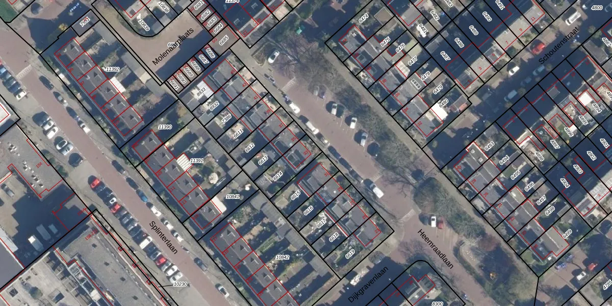 Gebruik de zoekbalk of klik op een perceel voor informatie over de adressen binnen dit perceel.