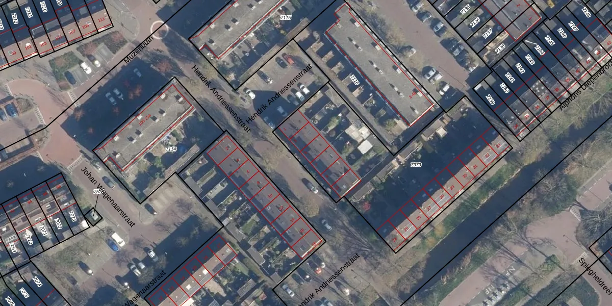 Het perceel waarop Hendrik Andriessenstraat 5 staat heeft een oppervlakte van 2015 m². Dit is een zeer groot perceel. De perceeloppervlakte wordt geregistreerd door het Kadaster. Gedetailleerde informatie over de maten van dit perceel kunt u vinden in het rapport Kadastrale kaart met maatvoering van Hendrik Andriessenstraat 5.