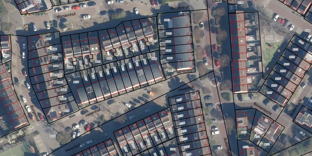 Gebruik de zoekbalk of klik op een perceel voor informatie over de adressen binnen dit perceel.