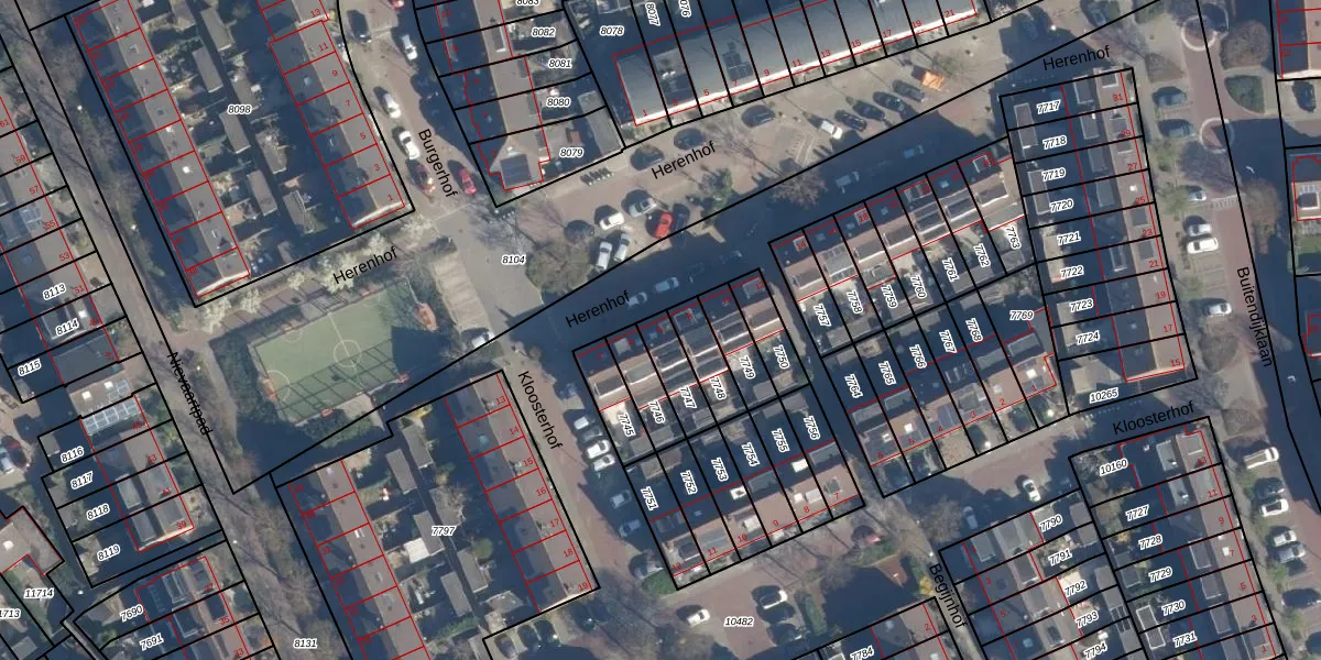 Het perceel waarop Herenhof 6 staat heeft een oppervlakte van 98 m². Dit is een klein perceel. De perceeloppervlakte wordt geregistreerd door het Kadaster. Gedetailleerde informatie over de maten van dit perceel kunt u vinden in het rapport Kadastrale kaart met maatvoering van Herenhof 6.