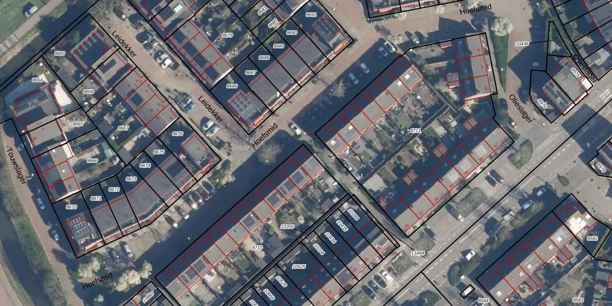 Het perceel waarop Hoefsmid 24 staat heeft een oppervlakte van 1419 m². Dit is een zeer groot perceel. De perceeloppervlakte wordt geregistreerd door het Kadaster. Gedetailleerde informatie over de maten van dit perceel kunt u vinden in het rapport Kadastrale kaart met maatvoering van Hoefsmid 24.