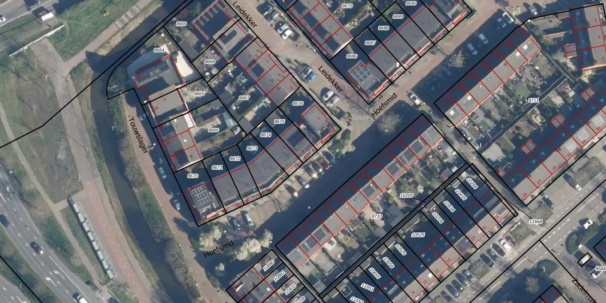 Gebruik de zoekbalk of klik op een perceel voor informatie over de adressen binnen dit perceel.