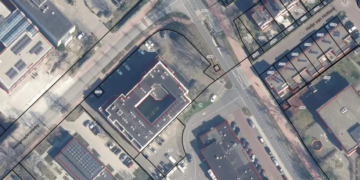 Hoogmadeseweg 112 is gelegen op kadastraal perceel LDD00B5860. Deze kadastrale aanduiding is uniek en wordt gebruikt door het Kadaster om eigendomsrechten en andere zakelijke rechten vast te leggen. Het perceel maakt onderdeel uit van de kadastrale gemeente Leiderdorp.