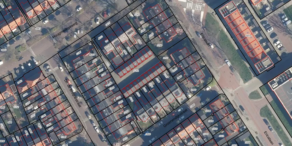 Het adres is gelegen op perceel 1241 in de sectie B en de kadastrale gemeente Leiderdorp. De kadastrale aanduiding is aldus LDD00-B-1241. Het perceel is kleiner dan gemiddeld in Leiderdorp. Het perceel is 699 m² groot, terwijl het gemiddelde ligt op 1285,95 m². Het grootste perceel in de kadastrale gemeente is 43,4 ha. Het kleinste perceel heeft een oppervlakte van 0 m². Op het perceel liggen in totaal 20 adressen. De laatste wijziging in het de Basisregistratie Kadaster (BRK) was op 23-01-2007.