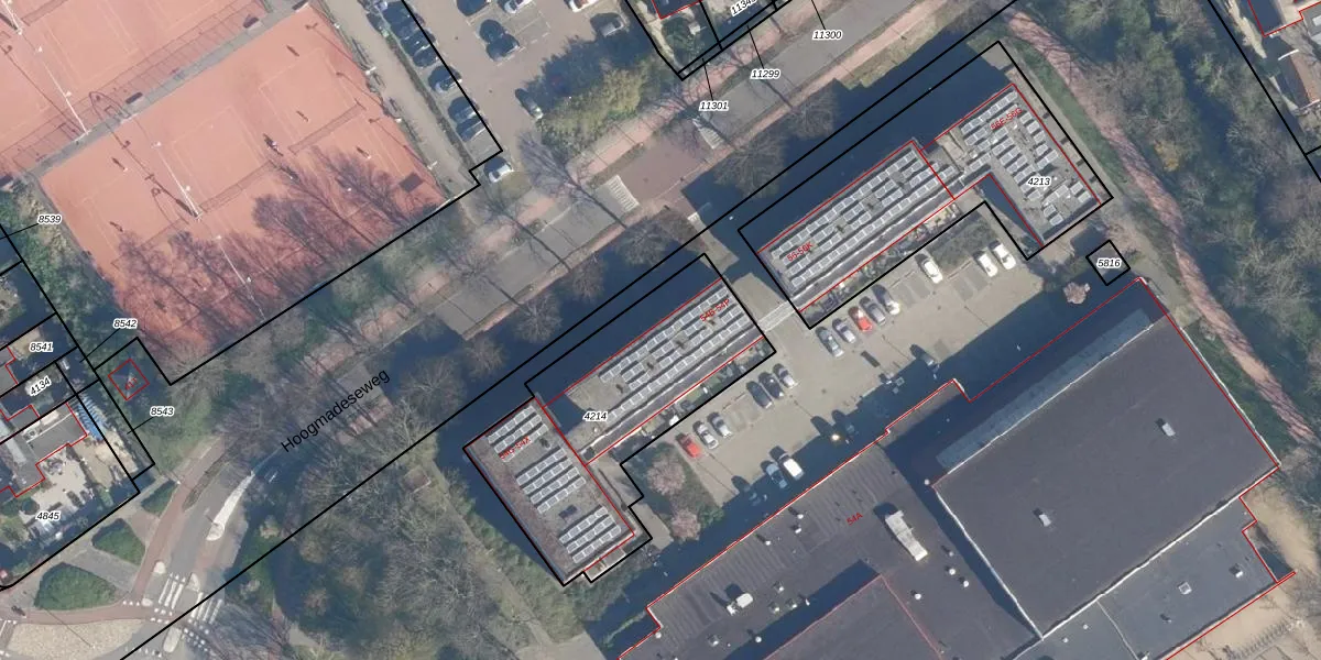Hoogmadeseweg 54-D is gelegen op kadastraal perceel LDD00B4214. Deze kadastrale aanduiding is uniek en wordt gebruikt door het Kadaster om eigendomsrechten en andere zakelijke rechten vast te leggen. Het perceel maakt onderdeel uit van de kadastrale gemeente Leiderdorp.