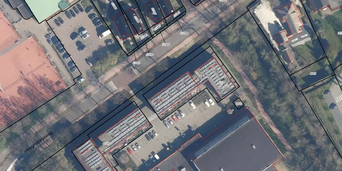 Hoogmadeseweg 56-B is gelegen op kadastraal perceel LDD00B4213. Deze kadastrale aanduiding is uniek en wordt gebruikt door het Kadaster om eigendomsrechten en andere zakelijke rechten vast te leggen. Het perceel maakt onderdeel uit van de kadastrale gemeente Leiderdorp.