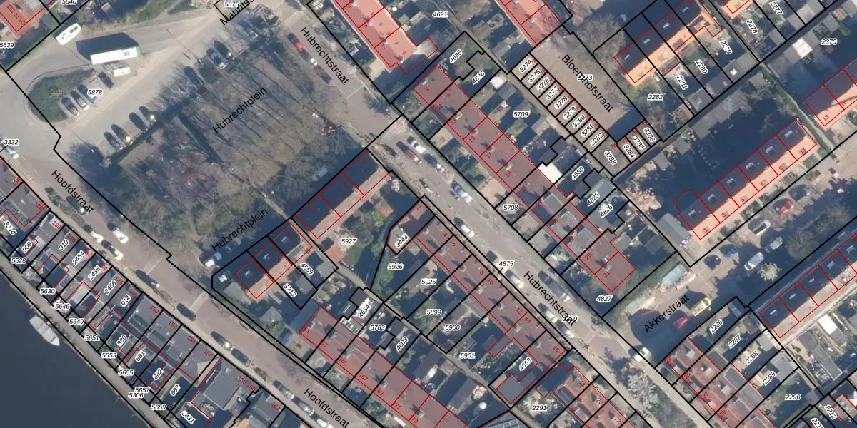Gebruik de zoekbalk of klik op een perceel voor informatie over de adressen binnen dit perceel.