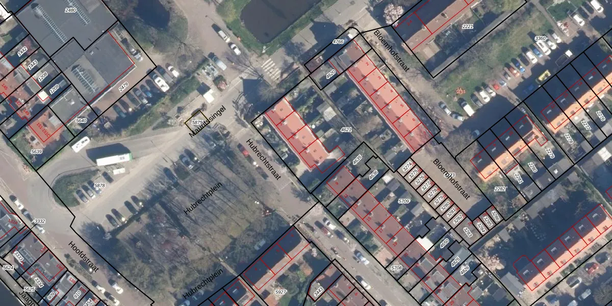 Het perceel waarop Hubrechtstraat 7 staat heeft een oppervlakte van 1493 m². Dit is een zeer groot perceel. De perceeloppervlakte wordt geregistreerd door het Kadaster. Gedetailleerde informatie over de maten van dit perceel kunt u vinden in het rapport Kadastrale kaart met maatvoering van Hubrechtstraat 7.