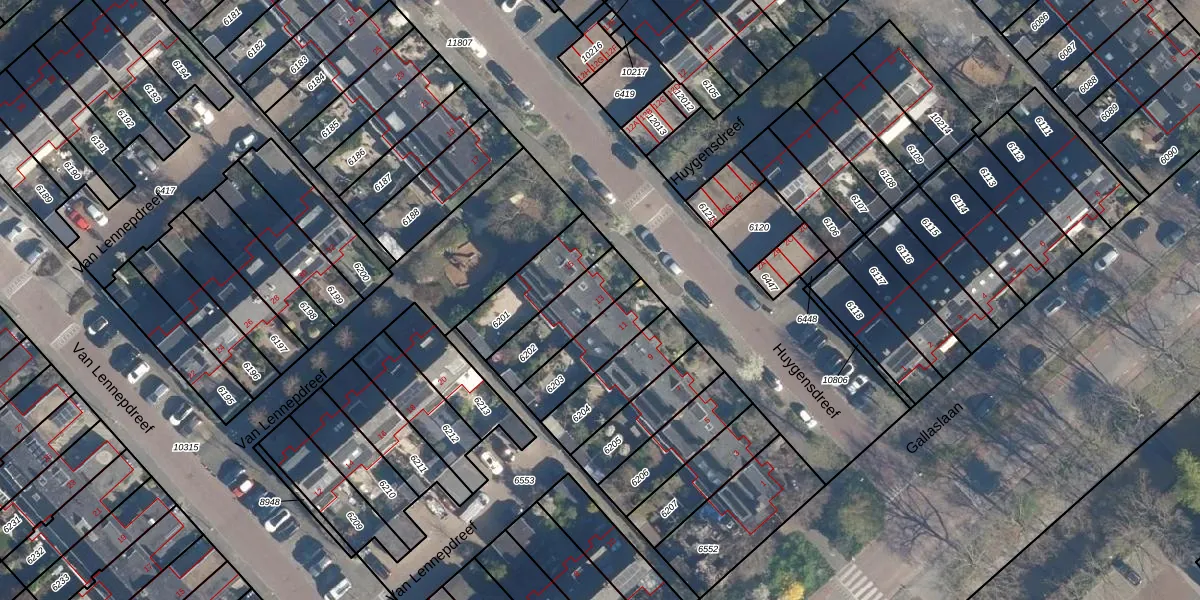Huygensdreef 13 is gelegen op kadastraal perceel LDD00A6202. Deze kadastrale aanduiding is uniek en wordt gebruikt door het Kadaster om eigendomsrechten en andere zakelijke rechten vast te leggen. Het perceel maakt onderdeel uit van de kadastrale gemeente Leiderdorp.