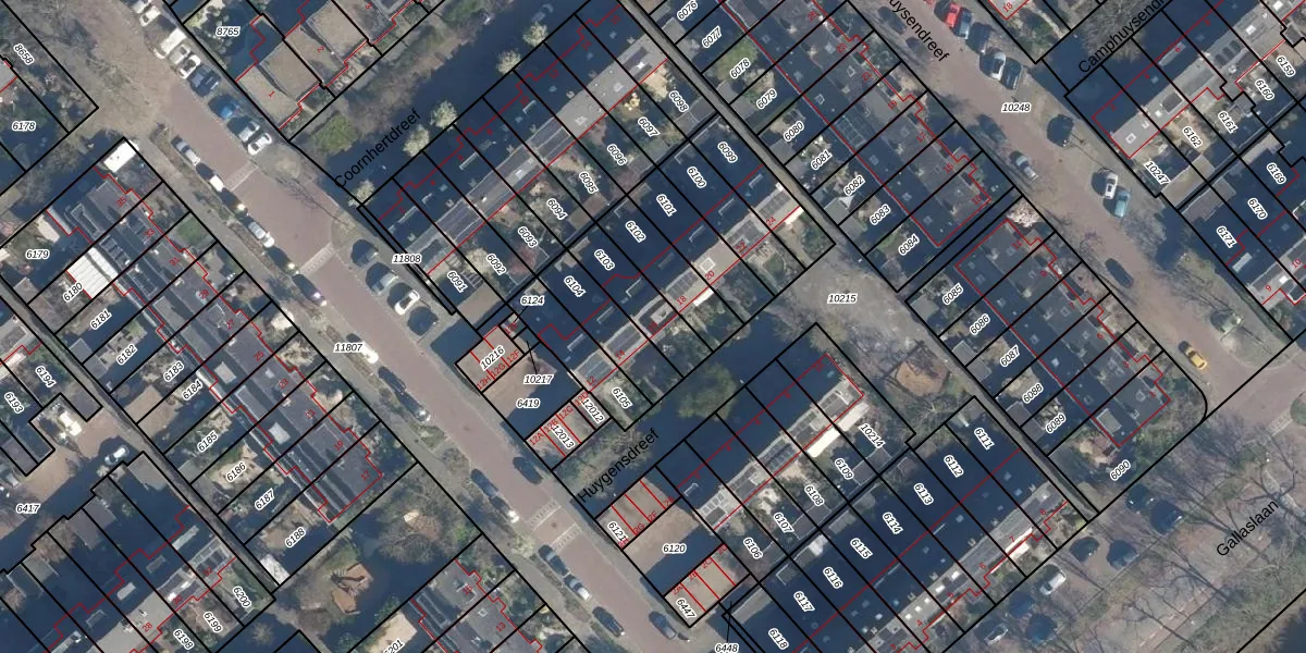 Huygensdreef 16 is gelegen op kadastraal perceel LDD00A6103. Deze kadastrale aanduiding is uniek en wordt gebruikt door het Kadaster om eigendomsrechten en andere zakelijke rechten vast te leggen. Het perceel maakt onderdeel uit van de kadastrale gemeente Leiderdorp.