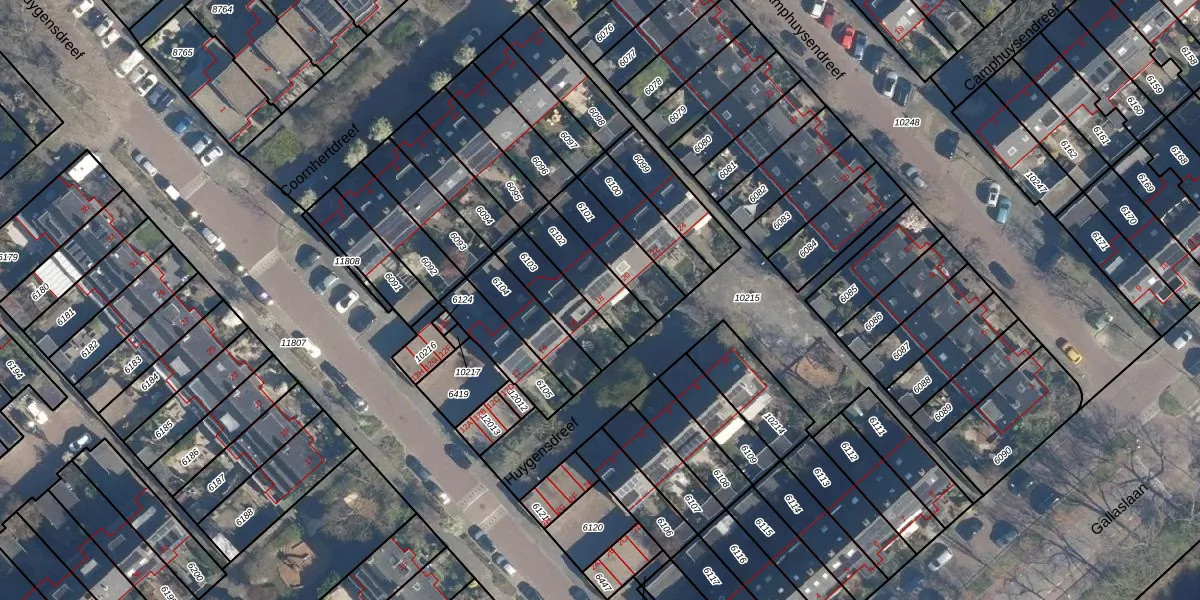 Huygensdreef 18 is gelegen op kadastraal perceel LDD00A6102. Deze kadastrale aanduiding is uniek en wordt gebruikt door het Kadaster om eigendomsrechten en andere zakelijke rechten vast te leggen. Het perceel maakt onderdeel uit van de kadastrale gemeente Leiderdorp.