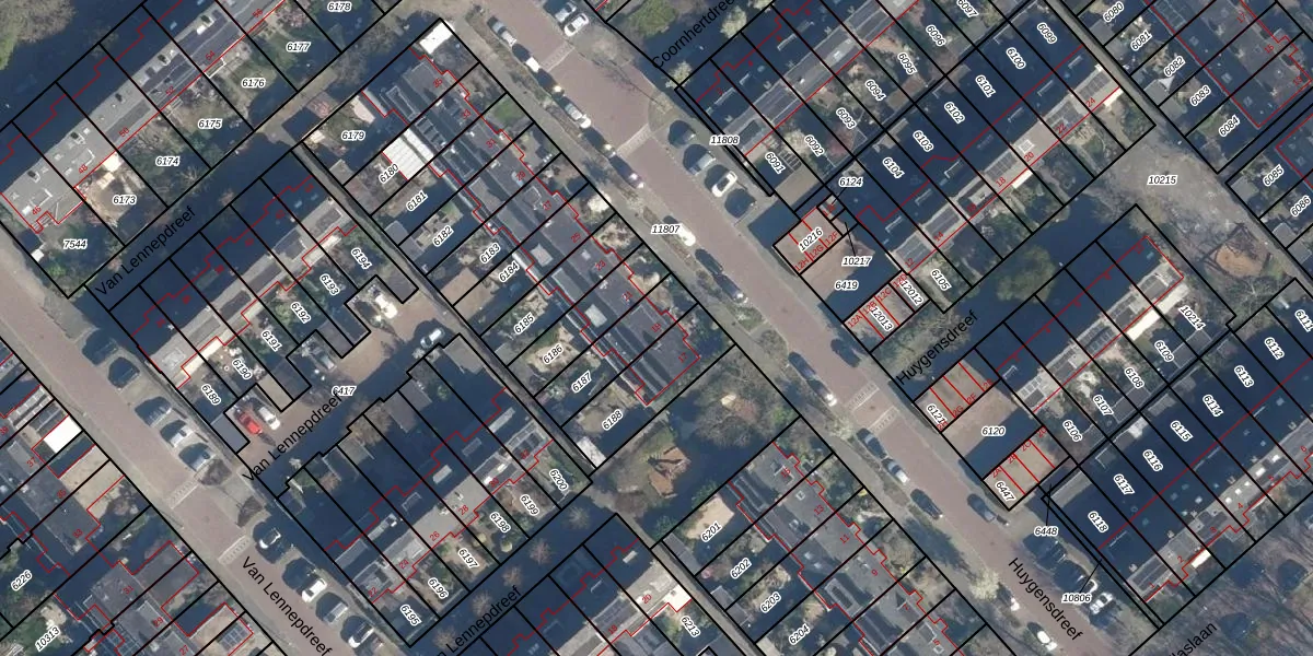 Huygensdreef 19 is gelegen op kadastraal perceel LDD00A6187. Deze kadastrale aanduiding is uniek en wordt gebruikt door het Kadaster om eigendomsrechten en andere zakelijke rechten vast te leggen. Het perceel maakt onderdeel uit van de kadastrale gemeente Leiderdorp.