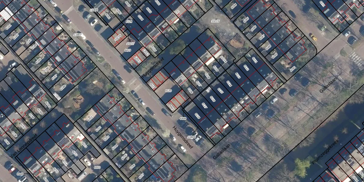 Huygensdreef 2-D is gelegen op kadastraal perceel LDD00A6447. Deze kadastrale aanduiding is uniek en wordt gebruikt door het Kadaster om eigendomsrechten en andere zakelijke rechten vast te leggen. Het perceel maakt onderdeel uit van de kadastrale gemeente Leiderdorp.