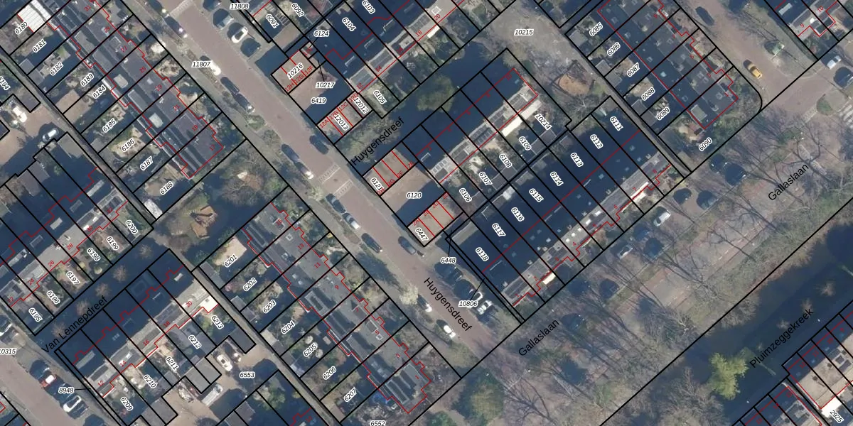 Huygensdreef 2-B is gelegen op kadastraal perceel LDD00A6447. Deze kadastrale aanduiding is uniek en wordt gebruikt door het Kadaster om eigendomsrechten en andere zakelijke rechten vast te leggen. Het perceel maakt onderdeel uit van de kadastrale gemeente Leiderdorp.