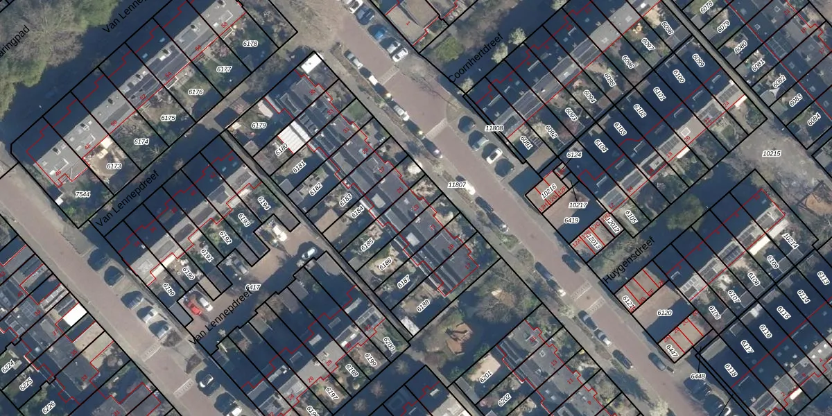 Het perceel waarop het adres ligt is LDD00-A-6185. De afkorting 'LDD00' staat voor kadastrale gemeente Leiderdorp. De gemiddelde perceelgrootte in Leiderdorp is 1289,87 m². Dit perceel is kleiner: de perceeloppervlakte bedraagt 176 m². Het grootste perceel in de kadastrale gemeente is 43,4 ha. Het kleinste perceel heeft een oppervlakte van 0 m². Er zijn geen andere adressen aanwezig op het perceel. De huidige grenzen van het perceel zijn digitaal in de Basisregistratie Kadaster (BRK) geregistreerd op 01-02-2002.