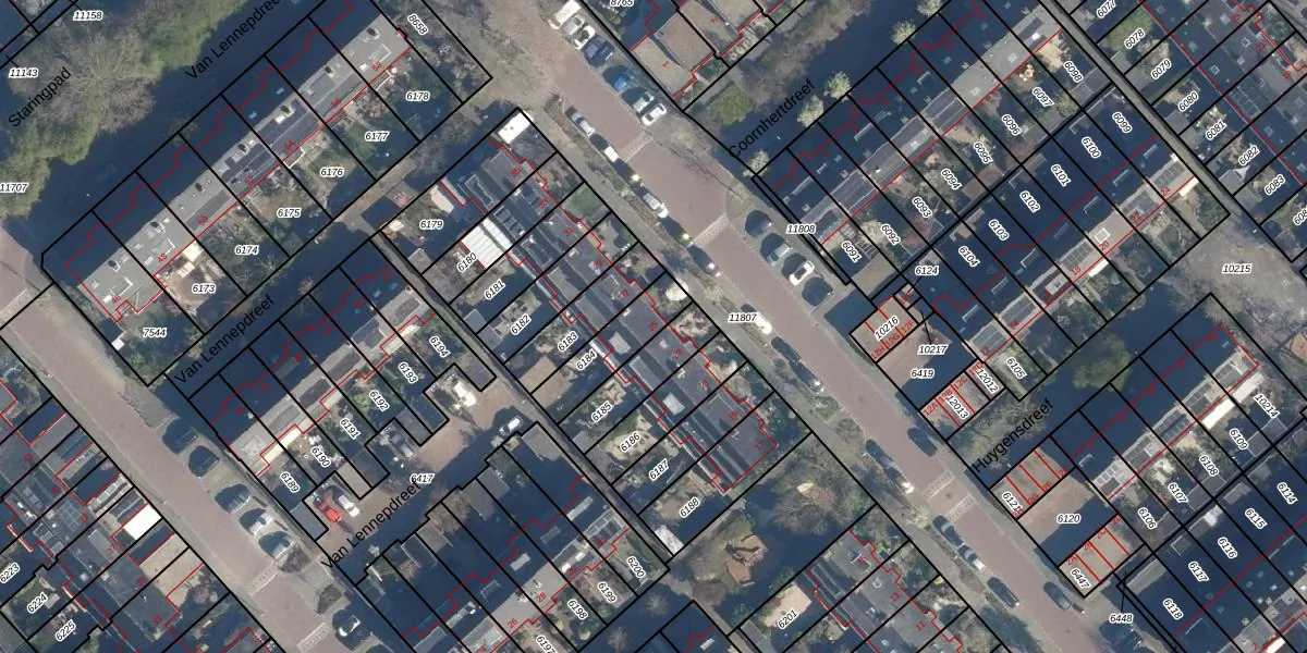 Het perceel waarop Huygensdreef 25 staat heeft een oppervlakte van 176 m². Dit is een middelgroot perceel. De perceeloppervlakte wordt geregistreerd door het Kadaster. Gedetailleerde informatie over de maten van dit perceel kunt u vinden in het rapport Kadastrale kaart met maatvoering van Huygensdreef 25.