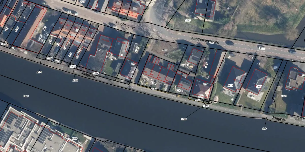 Het perceel waarop Jaagpad 46 staat heeft een oppervlakte van 405 m². Dit is een groot perceel. De perceeloppervlakte wordt geregistreerd door het Kadaster. Gedetailleerde informatie over de maten van dit perceel kunt u vinden in het rapport Kadastrale kaart met maatvoering van Jaagpad 46.