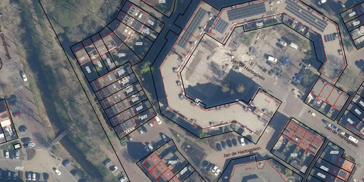 Jan de Hartogplein 12 is gelegen op kadastraal perceel LDD00A7011. Deze kadastrale aanduiding is uniek en wordt gebruikt door het Kadaster om eigendomsrechten en andere zakelijke rechten vast te leggen. Het perceel maakt onderdeel uit van de kadastrale gemeente Leiderdorp.