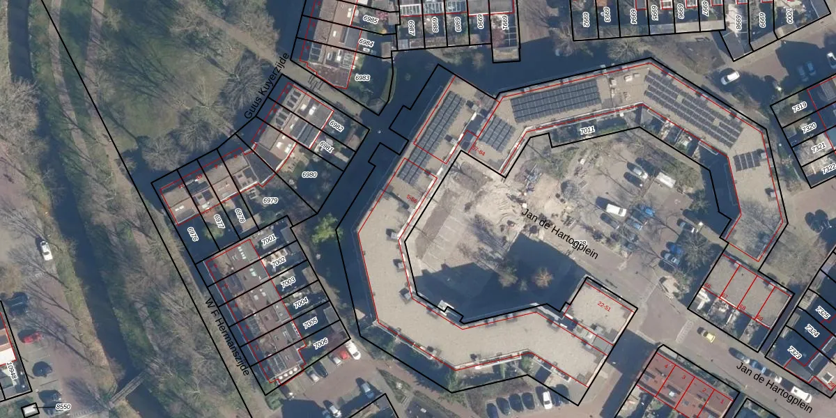 Het perceel waarop Jan de Hartogplein 17 staat heeft een oppervlakte van 3730 m². Dit is een zeer groot perceel. De perceeloppervlakte wordt geregistreerd door het Kadaster. Gedetailleerde informatie over de maten van dit perceel kunt u vinden in het rapport Kadastrale kaart met maatvoering van Jan de Hartogplein 17.