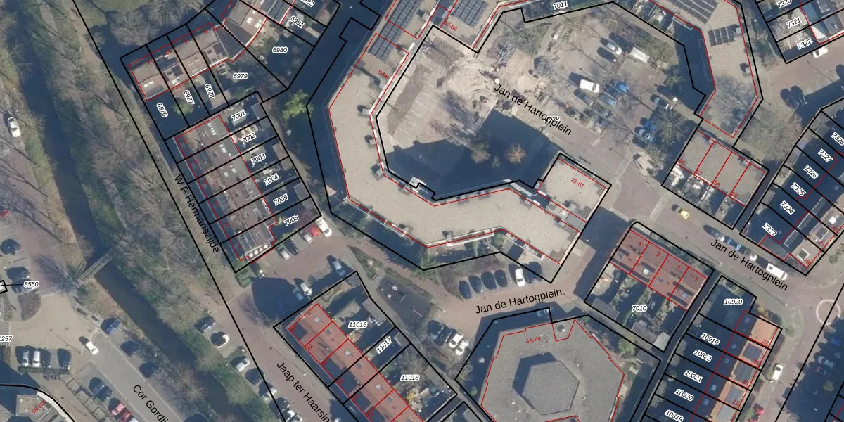 Het perceel waarop Jan de Hartogplein 28 staat heeft een oppervlakte van 3730 m². Dit is een zeer groot perceel. De perceeloppervlakte wordt geregistreerd door het Kadaster. Gedetailleerde informatie over de maten van dit perceel kunt u vinden in het rapport Kadastrale kaart met maatvoering van Jan de Hartogplein 28.