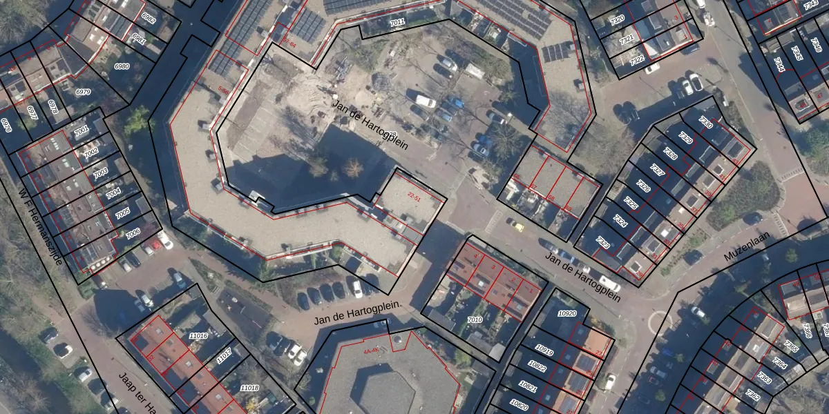 Jan de Hartogplein 29 is gelegen op kadastraal perceel LDD00A7011. Deze kadastrale aanduiding is uniek en wordt gebruikt door het Kadaster om eigendomsrechten en andere zakelijke rechten vast te leggen. Het perceel maakt onderdeel uit van de kadastrale gemeente Leiderdorp.