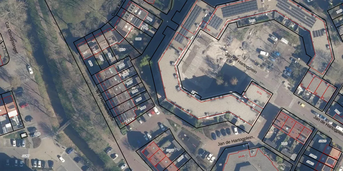 Jan de Hartogplein 39 is gelegen op kadastraal perceel LDD00A7011. Deze kadastrale aanduiding is uniek en wordt gebruikt door het Kadaster om eigendomsrechten en andere zakelijke rechten vast te leggen. Het perceel maakt onderdeel uit van de kadastrale gemeente Leiderdorp.