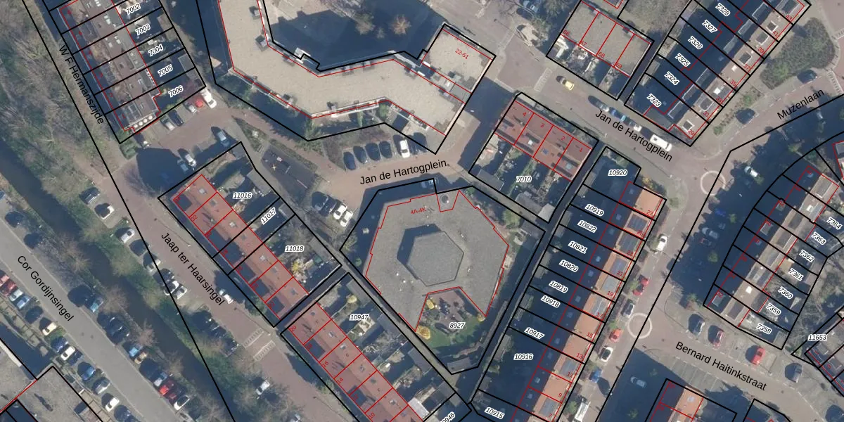 Het perceel waarop Jan de Hartogplein 4-J staat heeft een oppervlakte van 1310 m². Dit is een zeer groot perceel. De perceeloppervlakte wordt geregistreerd door het Kadaster. Gedetailleerde informatie over de maten van dit perceel kunt u vinden in het rapport Kadastrale kaart met maatvoering van Jan de Hartogplein 4-J.