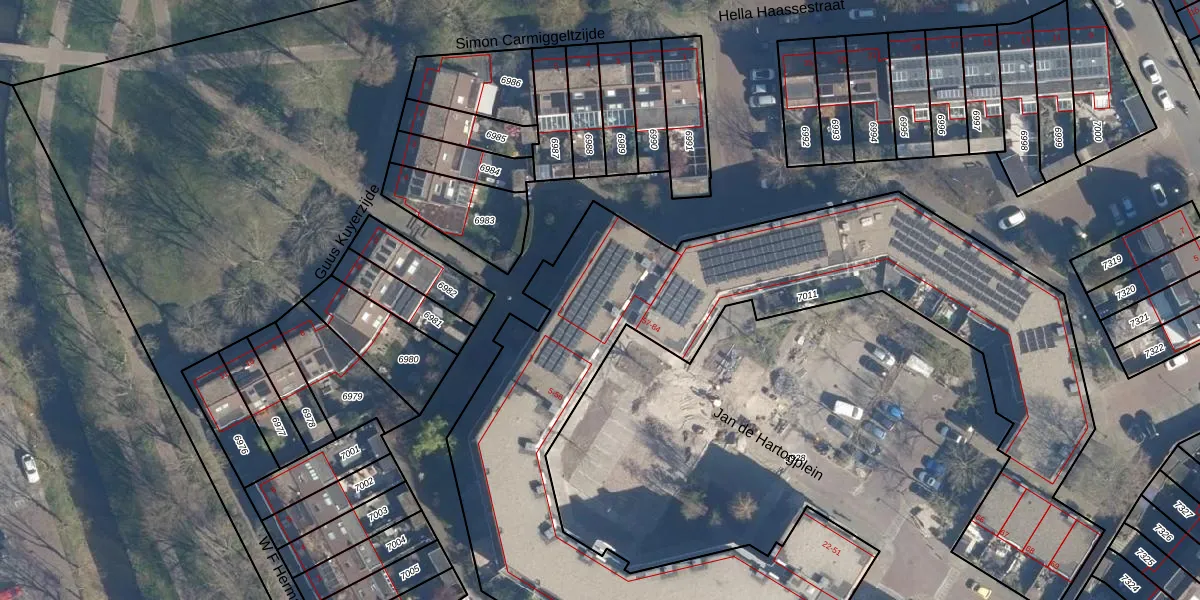 Het perceel waarop Jan de Hartogplein 48 staat heeft een oppervlakte van 3730 m². Dit is een zeer groot perceel. De perceeloppervlakte wordt geregistreerd door het Kadaster. Gedetailleerde informatie over de maten van dit perceel kunt u vinden in het rapport Kadastrale kaart met maatvoering van Jan de Hartogplein 48.