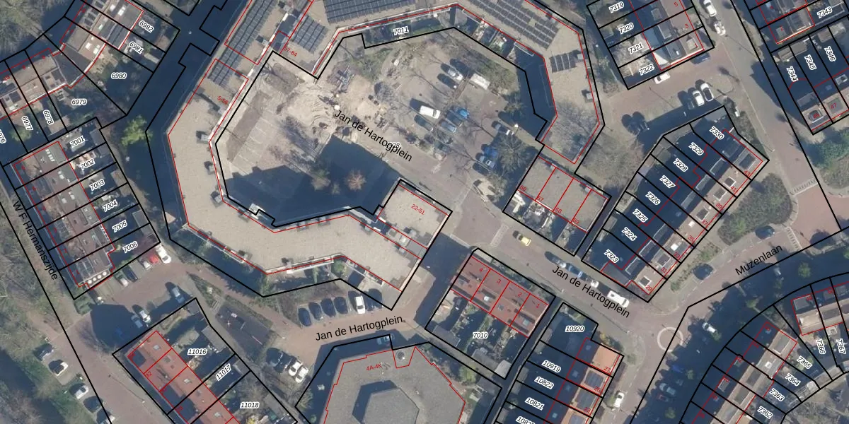 Jan de Hartogplein 50 is gelegen op kadastraal perceel LDD00A7011. Deze kadastrale aanduiding is uniek en wordt gebruikt door het Kadaster om eigendomsrechten en andere zakelijke rechten vast te leggen. Het perceel maakt onderdeel uit van de kadastrale gemeente Leiderdorp.